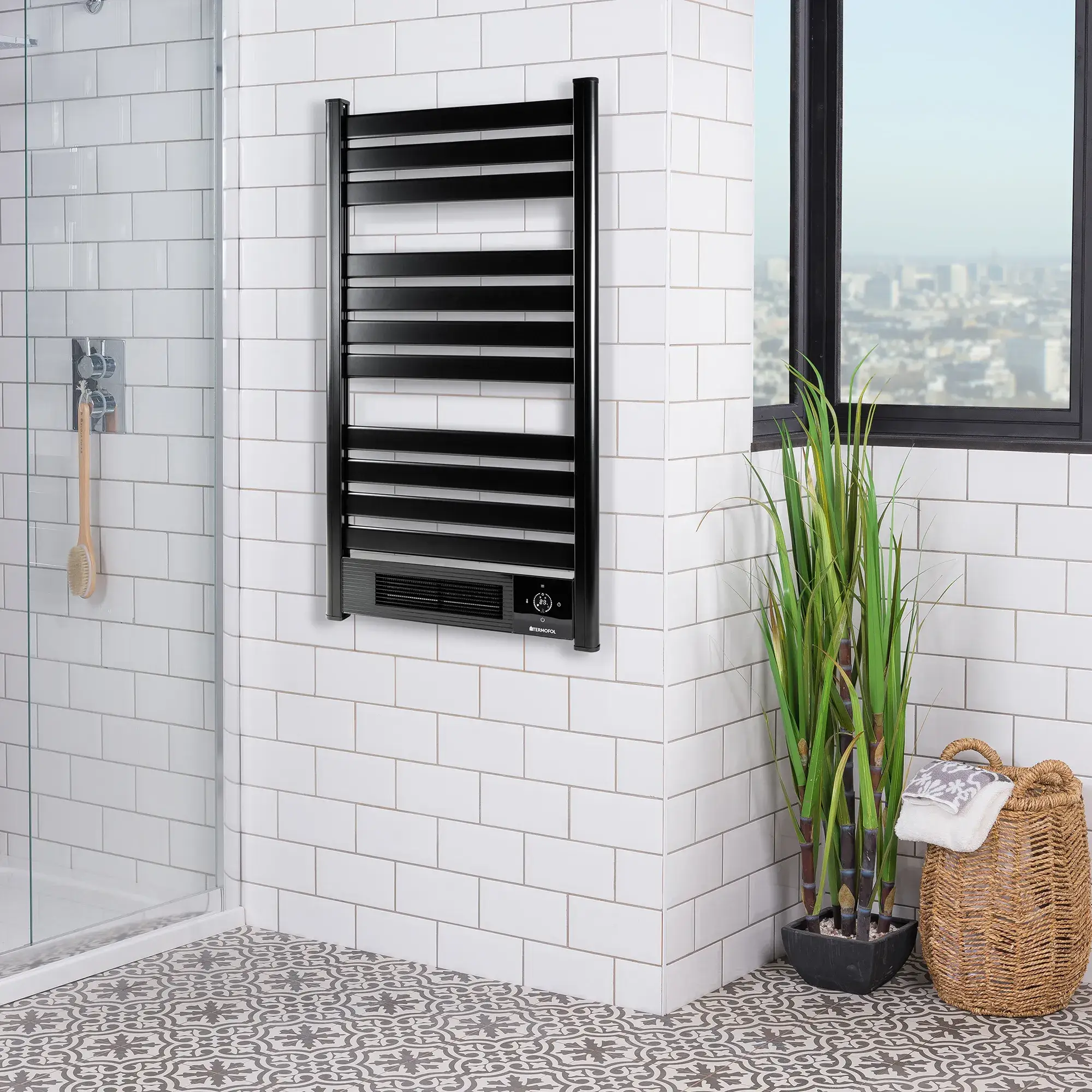 – Električni sušač peškira pruža lokalizovanu toplotu za sušenje tekstila i dodatno zagrevanje vazduha u zoni oko tuš kabine ili lavaboa.